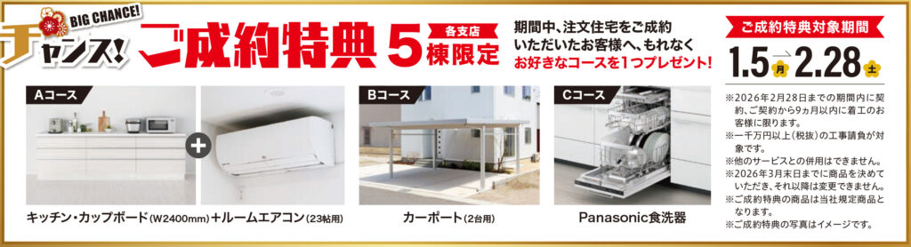 新春キャンペーンでは、ご来場・ご契約いただいた方に