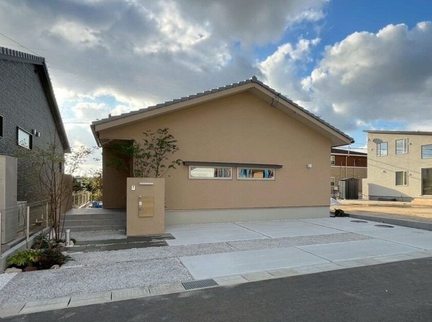 ◎白茶色の外壁と銀黒の瓦で温かい和モダンな外観