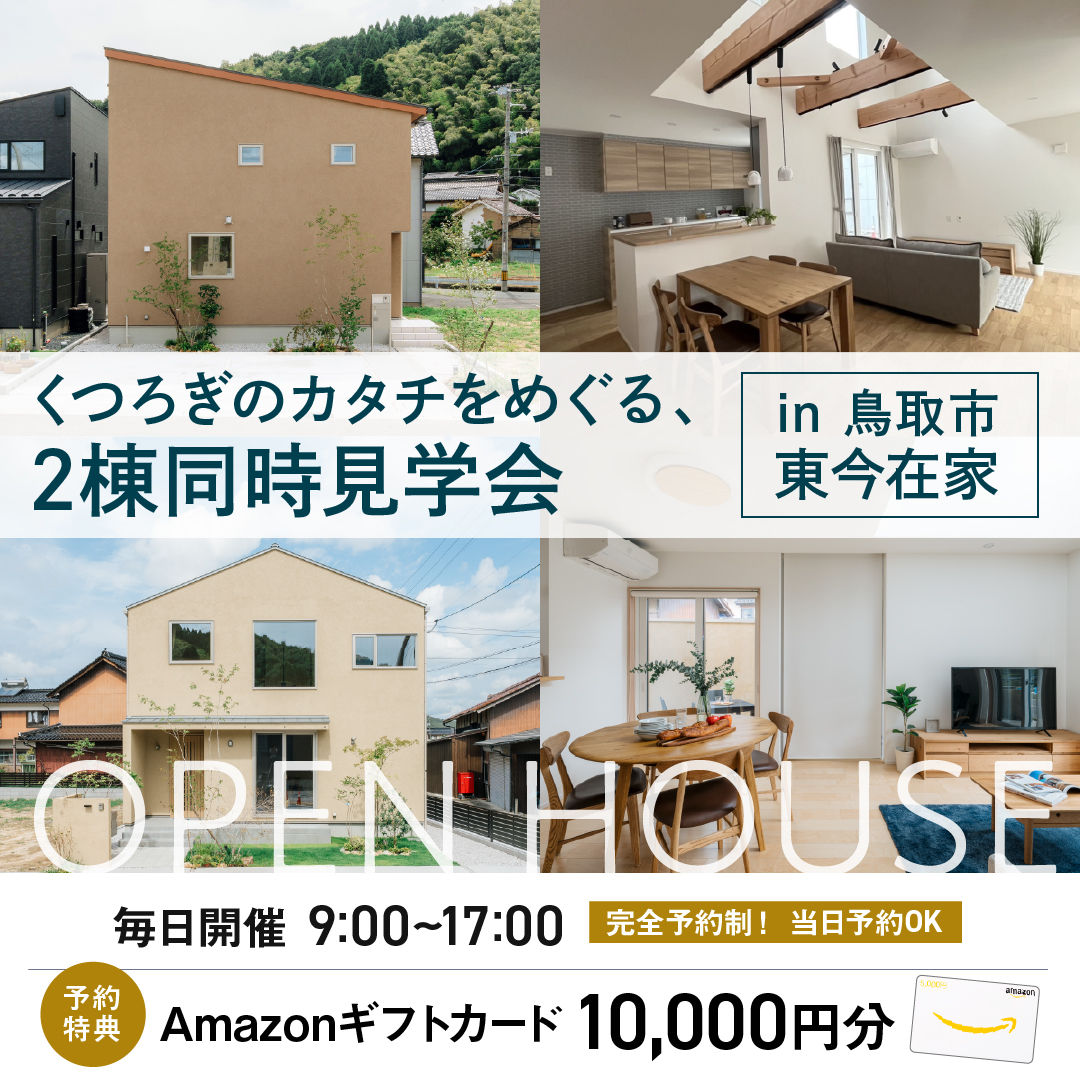 【当日予約OK・毎日開催】くつろぎのカタチをめぐる、2棟同時見学会 in 鳥取市東今在家