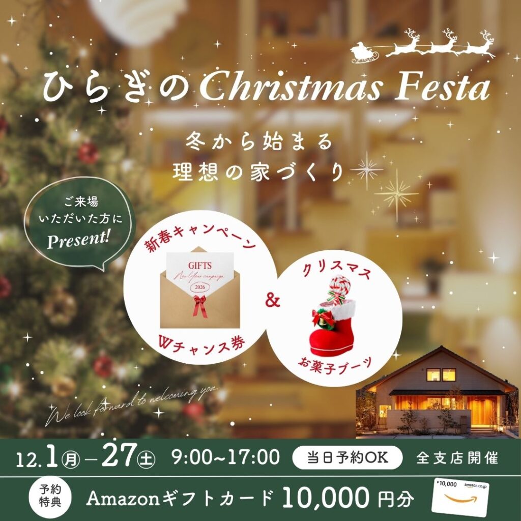❄️12月限定!❄️ ひらぎののモデルハウスで心あたたまるクリスマスを_🎄 もらって嬉しいプレゼント🎁も!家族みんなで楽しい冬をひらぎのでお過ごしください✨ 各支店へのご来場予約はこちらから!※事前にご予約いただくとスムーズにご案内できます ※当日予約はお電話にてお問い合わせをお願いします松江支店【0852-60-2881】 出雲支店【0853-22-292…