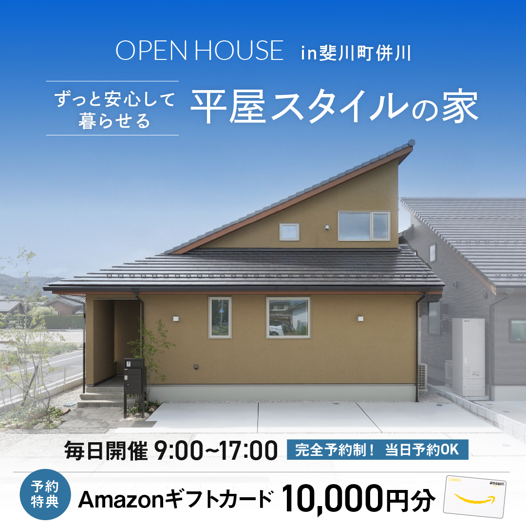ダイニングにある大きな吹抜けと、暮らしやすいストレスフリーの動線で、居心地よく住みやすい和モダンな平屋風2階建てに仕上げました。