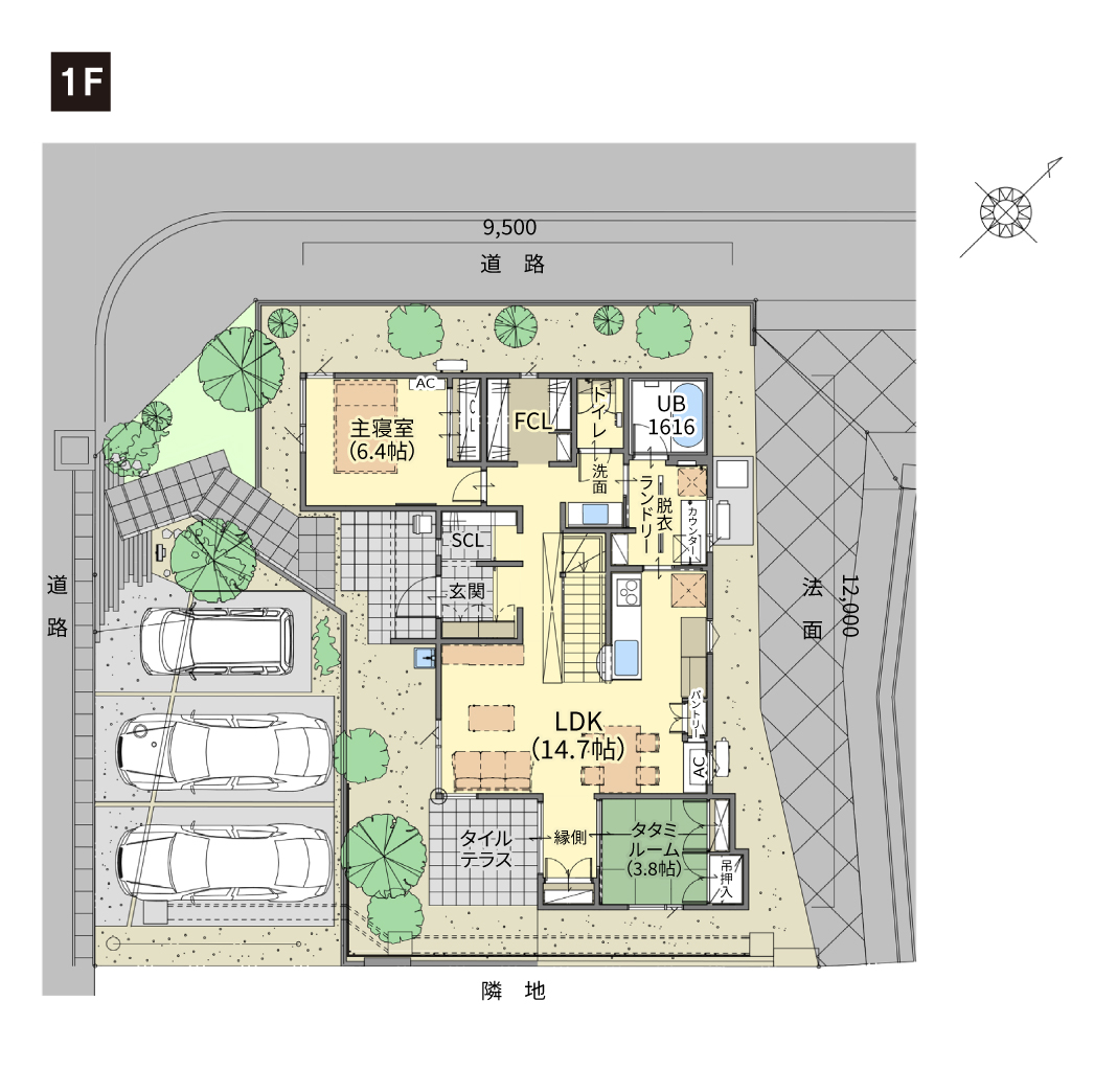 水廻りをひとつに集約することで家事がしやすく、さらに寝室からもアクセスしやすい便利な生活動線を実現。LDKとは動線を分けられるため、日常の動きもスムーズです。扉付きで独立できるタタミルームは、来客時にも重宝します。タタミとテラスの間にある縁側スペースで、まったりと心落ち着くひとときを楽しめるのも魅力のひとつ。2階には広さにゆとりのある洋室を確保し、お子様にとってもうれしい空間に。家族はもちろん、訪れる友人にも心地よい快適な住まいです。
