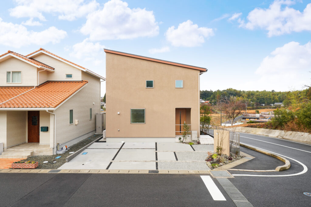 高性能住宅だからこそ叶う仕切らない開放的な暮らし アイボリー系の優しい外壁と軒なしのシンプルなデザインが魅力のナチュラル和モダンの家。リビングドアをなくし、高性能住宅だからこそ叶う仕切らない開放的な暮らしを実現しました。個室のタタミルームは客間や書斎など多彩に活用でき、地窓からお庭の景色を楽しむこともできます。水回りは集約され、リビングとキッチンからアクセス…