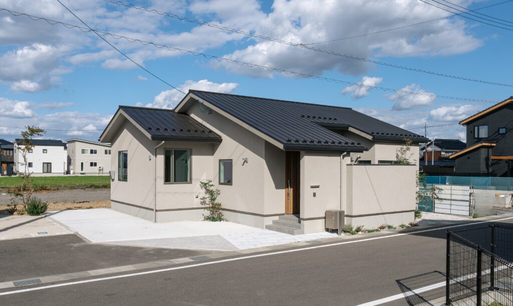 暮らしやすさと心地よさが両立したこだわりの平屋住宅 グレーを基調とし、高さをおさえた外観が、道路側から見たときにも落ち着いた印象を与えてくれる平屋。内部には、日々の生活をすっきり整える通常の収納に加えて便利な小屋裏収納も備え、収納力も十分です。家族のプライベートな時間を楽しめるインナーテラスは、外からの視線を気にせずリラックスできる特別な空間。リビングはゆっ…