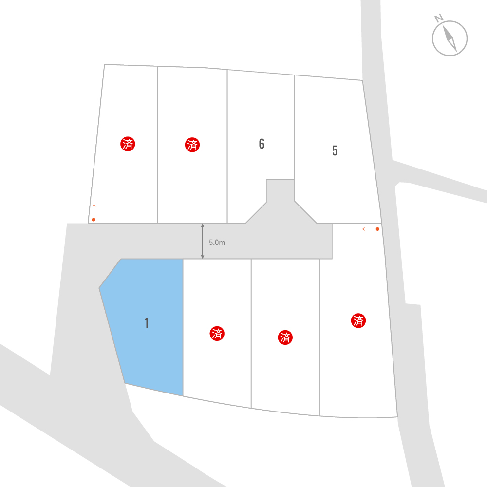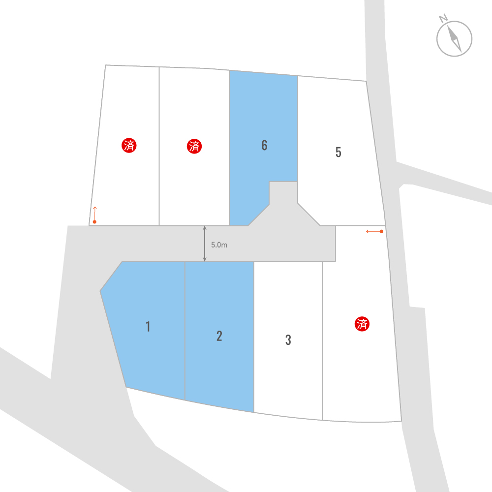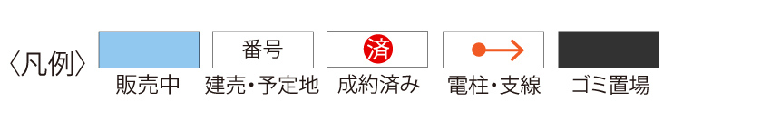 建築条件付、上水道口径別負担金42,900円、6~8号地は北側ブロック+目隠しフェンス完備