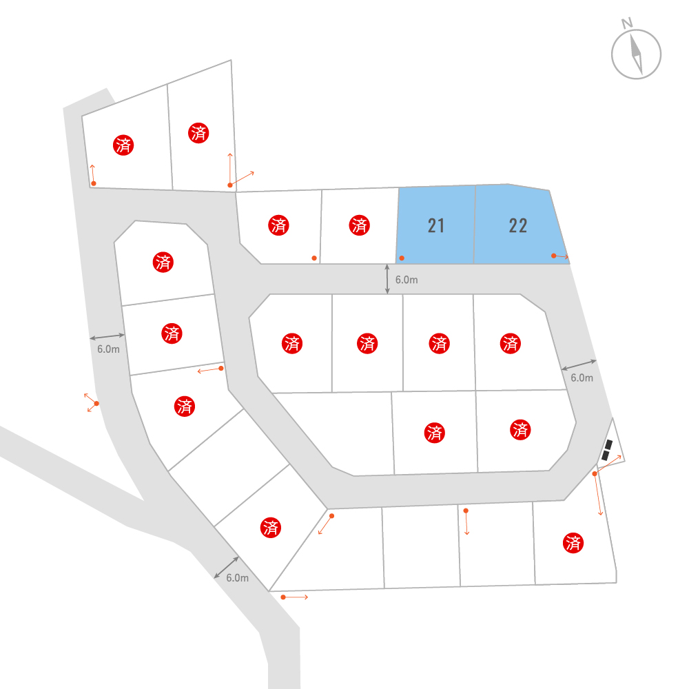団地の北側がレッドゾーン・団地の一部がイエローゾーンに指定されています。 ※境界ブロックのルールあり