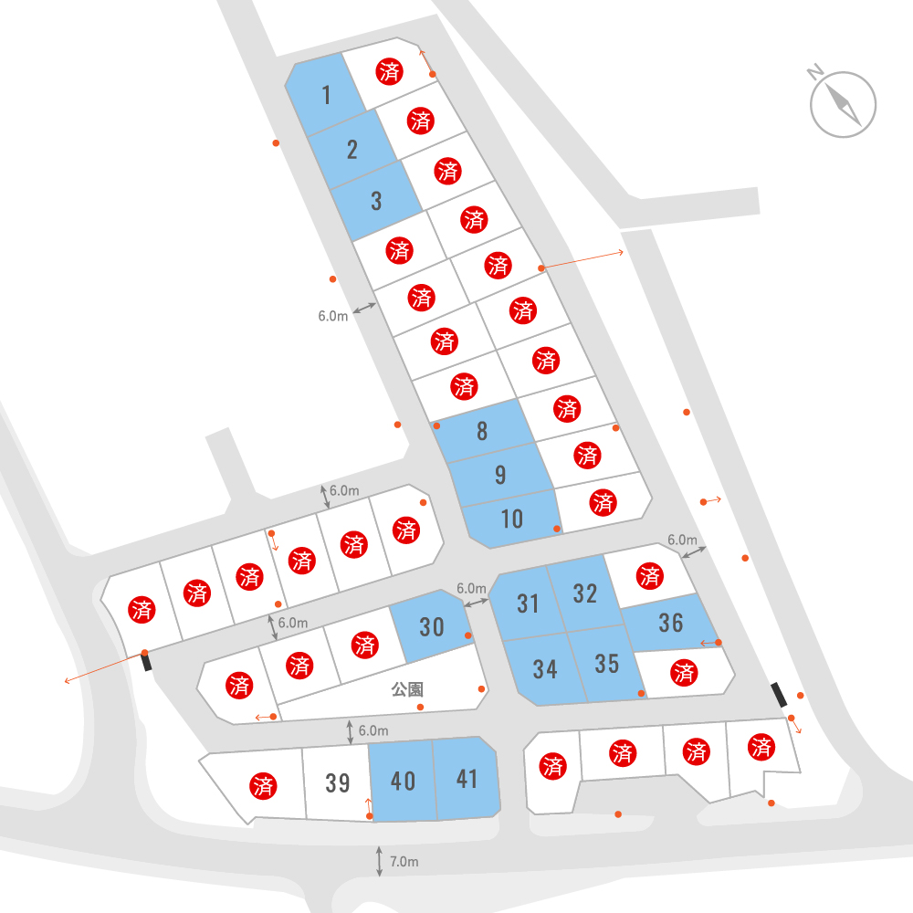 建築条件付 ※1~3号地は土地代金の中にL型擁壁工事代が含まれます ※境界ブロックのルールあり