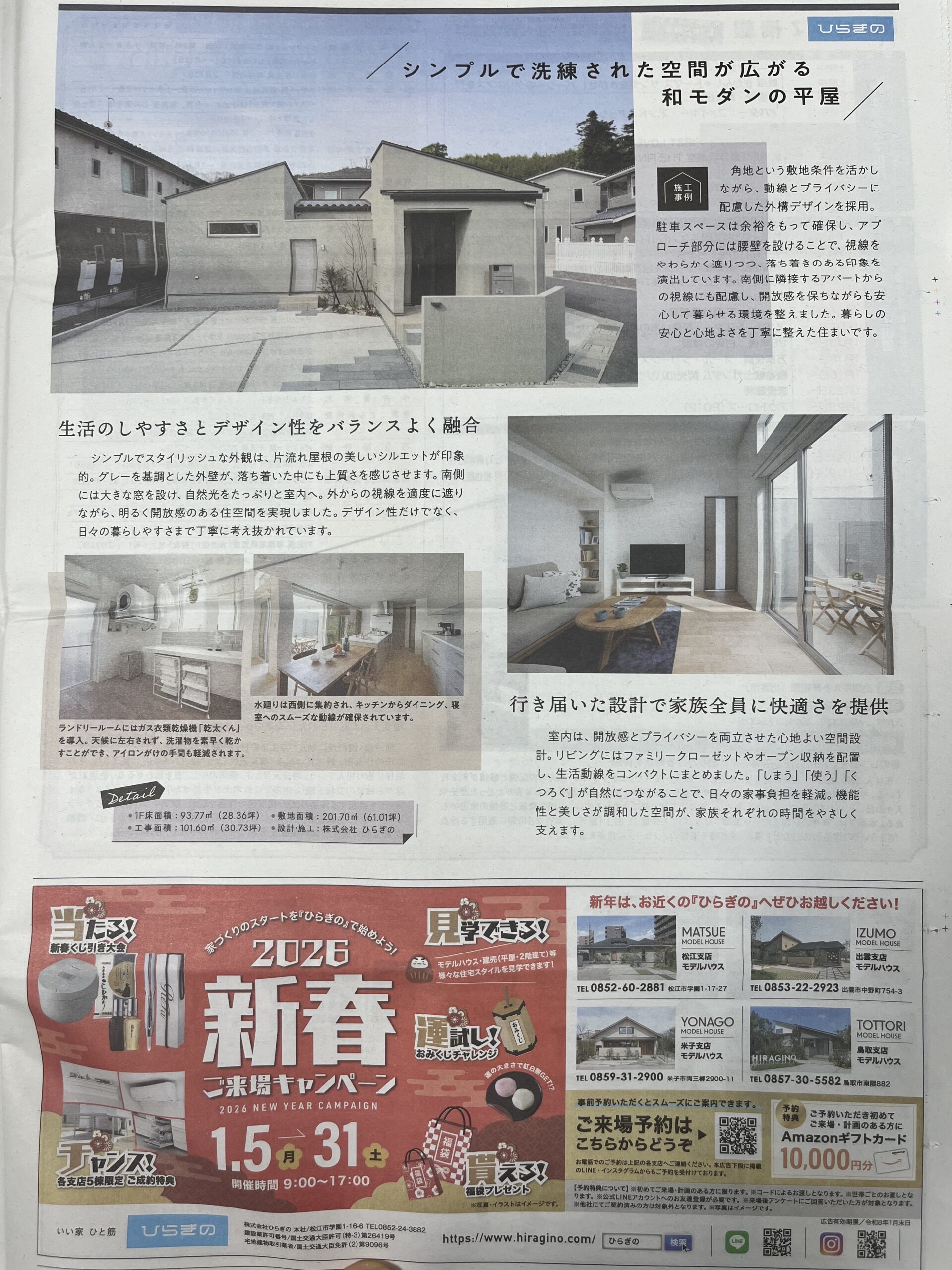 りびえーるに掲載されました! 2026年1月16日 メディア掲載 2026年1月11日発刊の [りびえーる] に当社の施工事例が掲載されました。暮らしやすさとデザイン性を両立した、当社のこだわりが詰まった一棟です。住まいづくりのヒントとして、ぜひご覧ください。