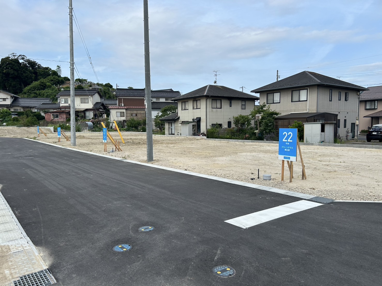 グリーンテラス東出雲 大型タウン・団地開発 松江2025年完成 グリーンテラス東出雲は、保育園・小学校・中学校が徒歩1㎞圏内にあり、教育環境が充実しています。バス停・駅・ICなどへのアクセスも良好。市街地で暮らしやすい分譲地です。 Gallery ギャラリー Detail 詳細情報 竣工 2025年 所在地 松江市東出雲町 開発面積 7687.71㎡ 総区画数 29区画