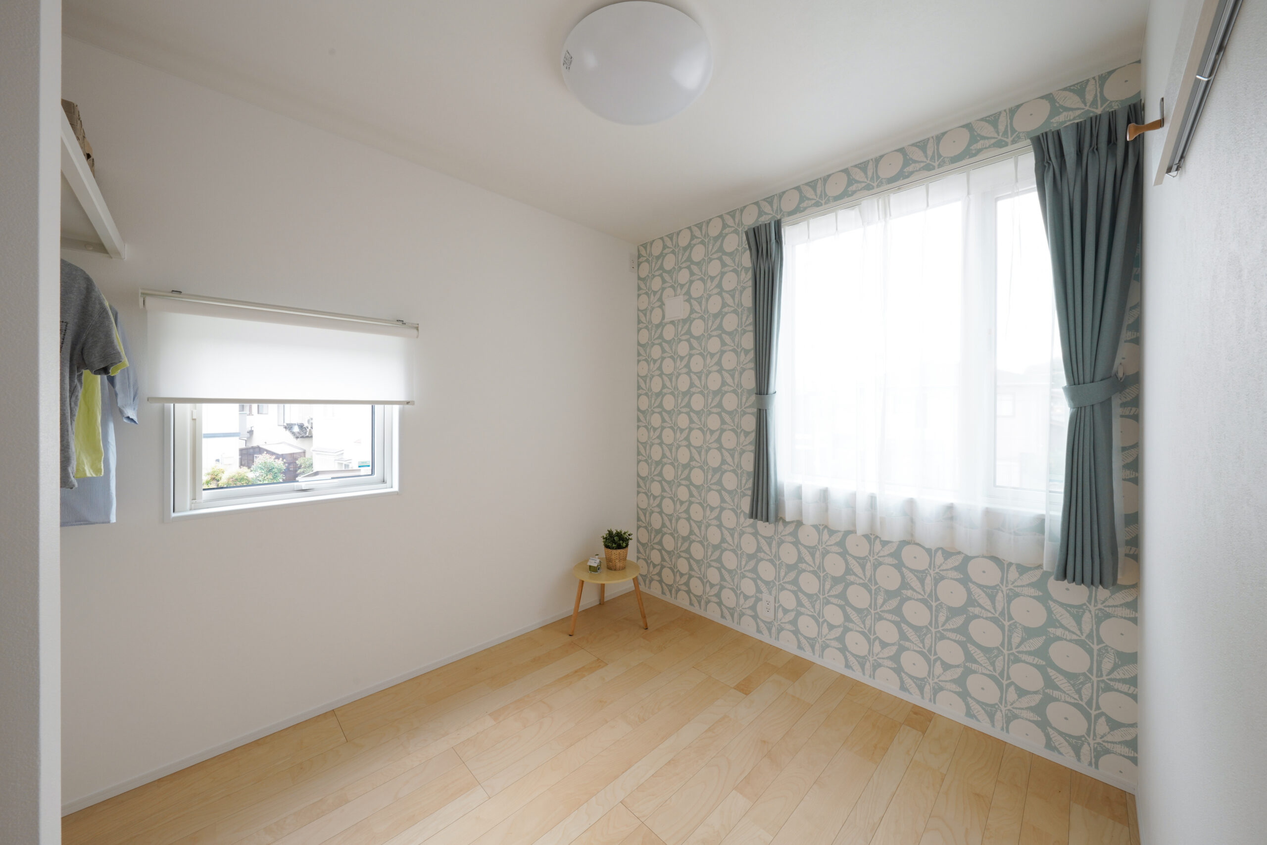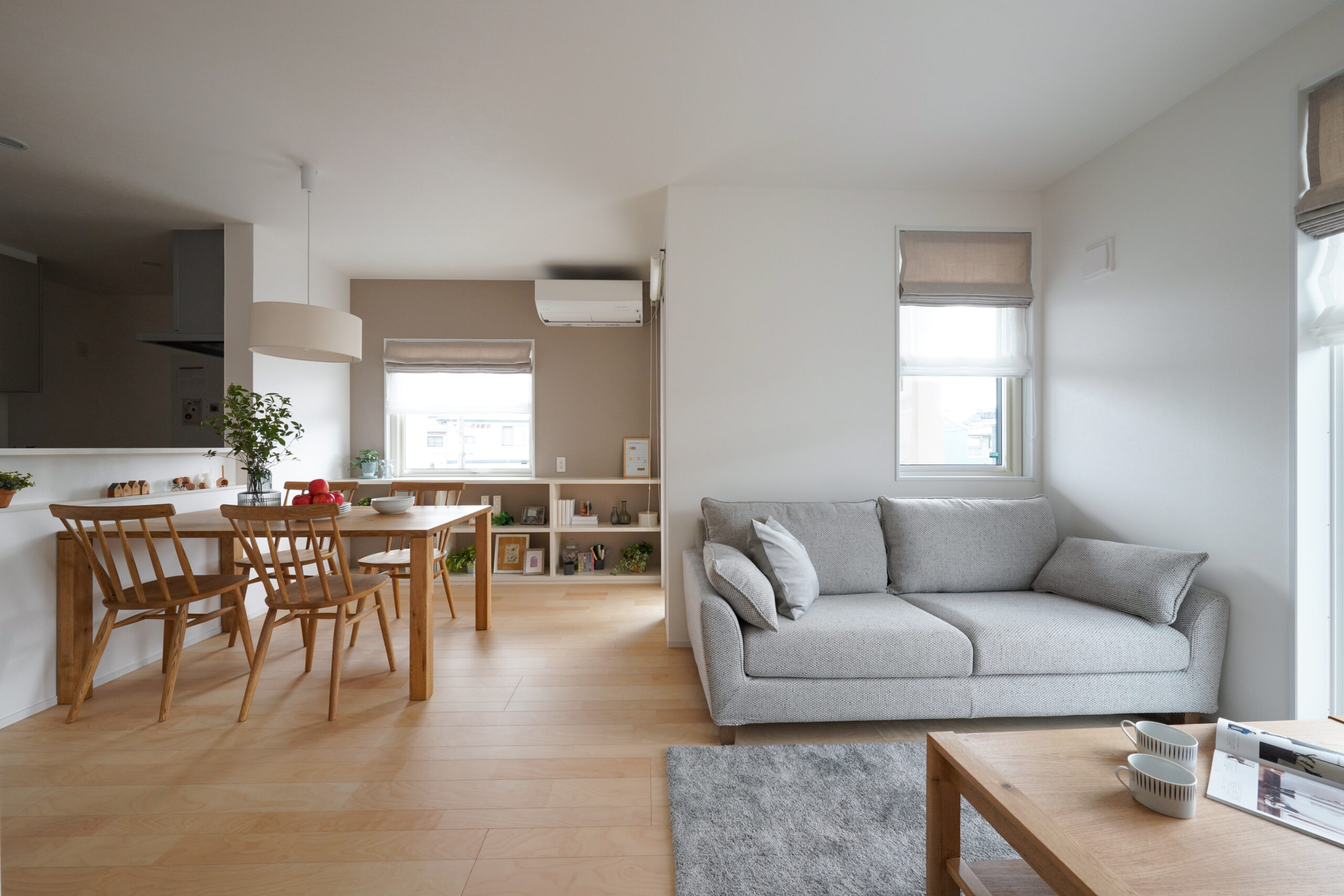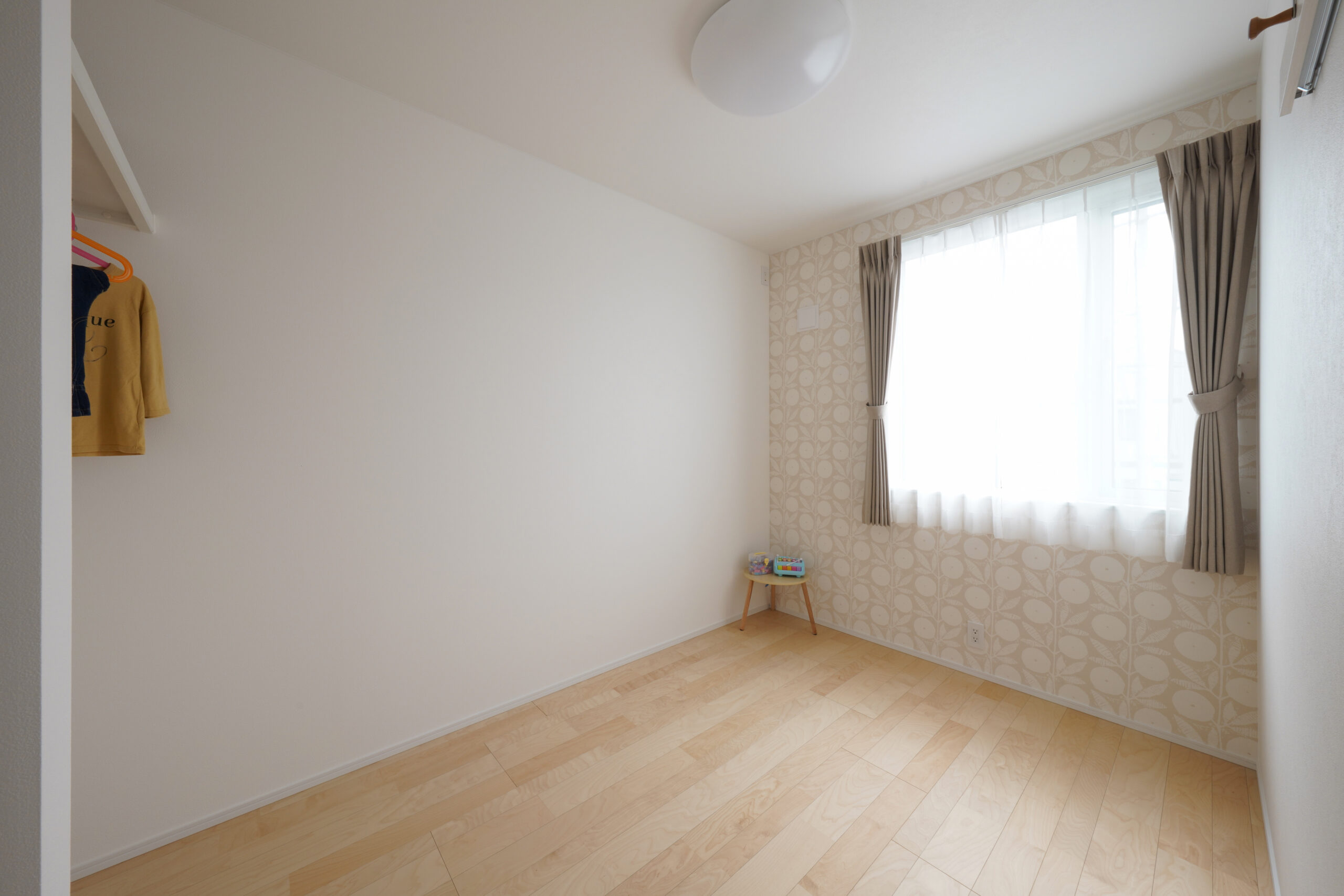 玄関を開けると正面にはアクセントウォールがあり、リビングドアを設けなくても家の中が丸見えにならない工夫が。プライバシーを守りながらも、家族が集う空間へ自然に繋がります。寝室は水回りに近い配置で、日々の生活から将来の安心まで考えられた動線設計。畳コーナーは大きな間口を採用し、リビングとの一体感を保ちながら、個室としても活用可能。日当たりと見晴らしに恵まれたリビングダイニング、そして開放的で風通しの良い洋室が、暮らしに心地よさと豊かさをもたらします。