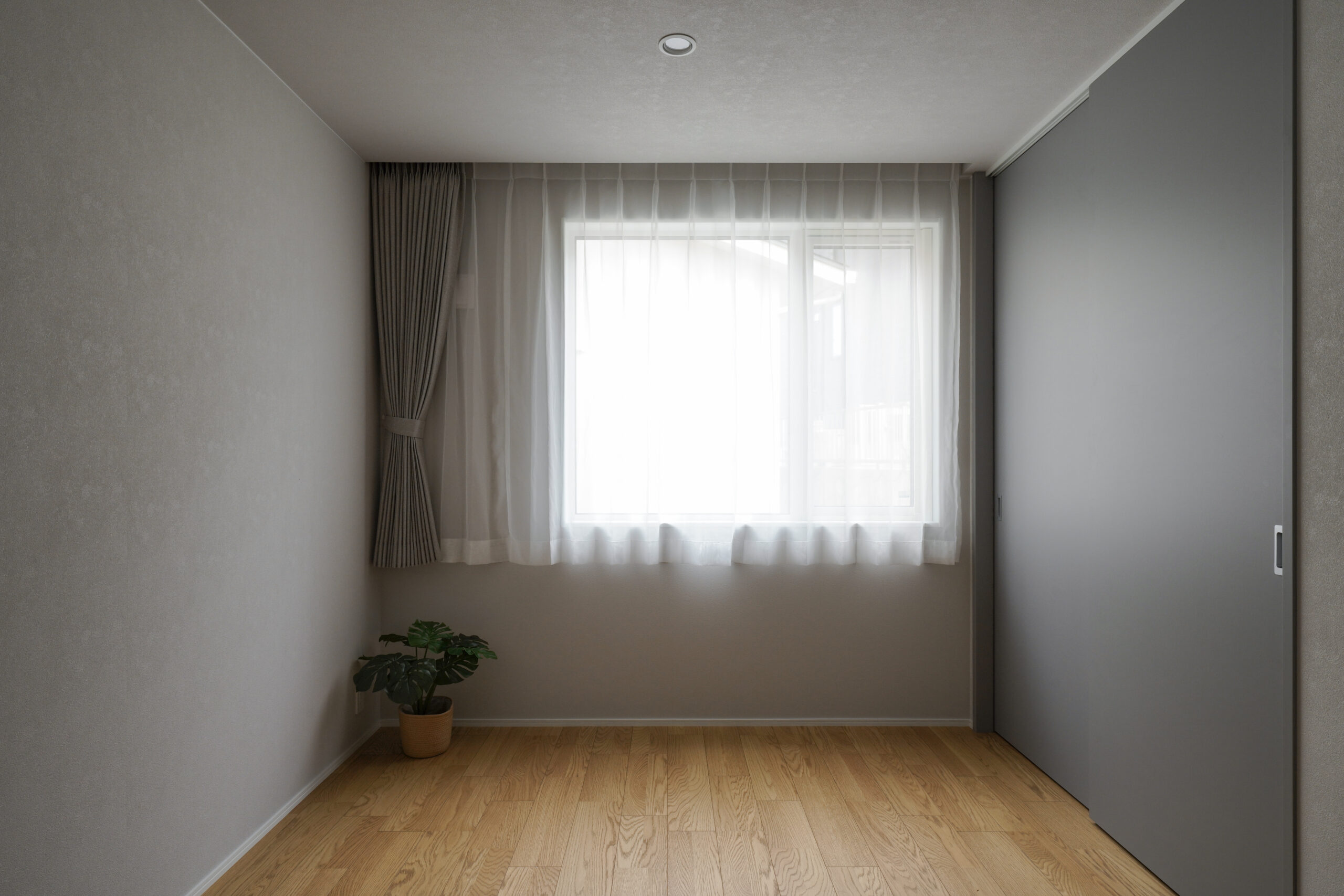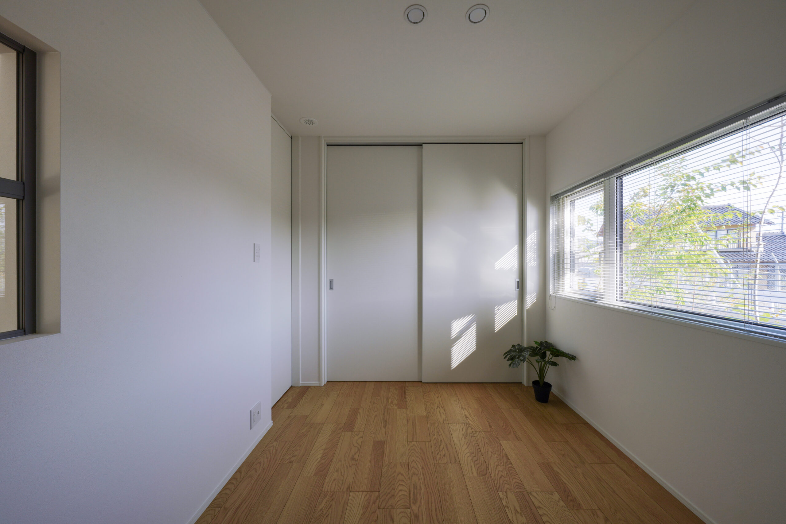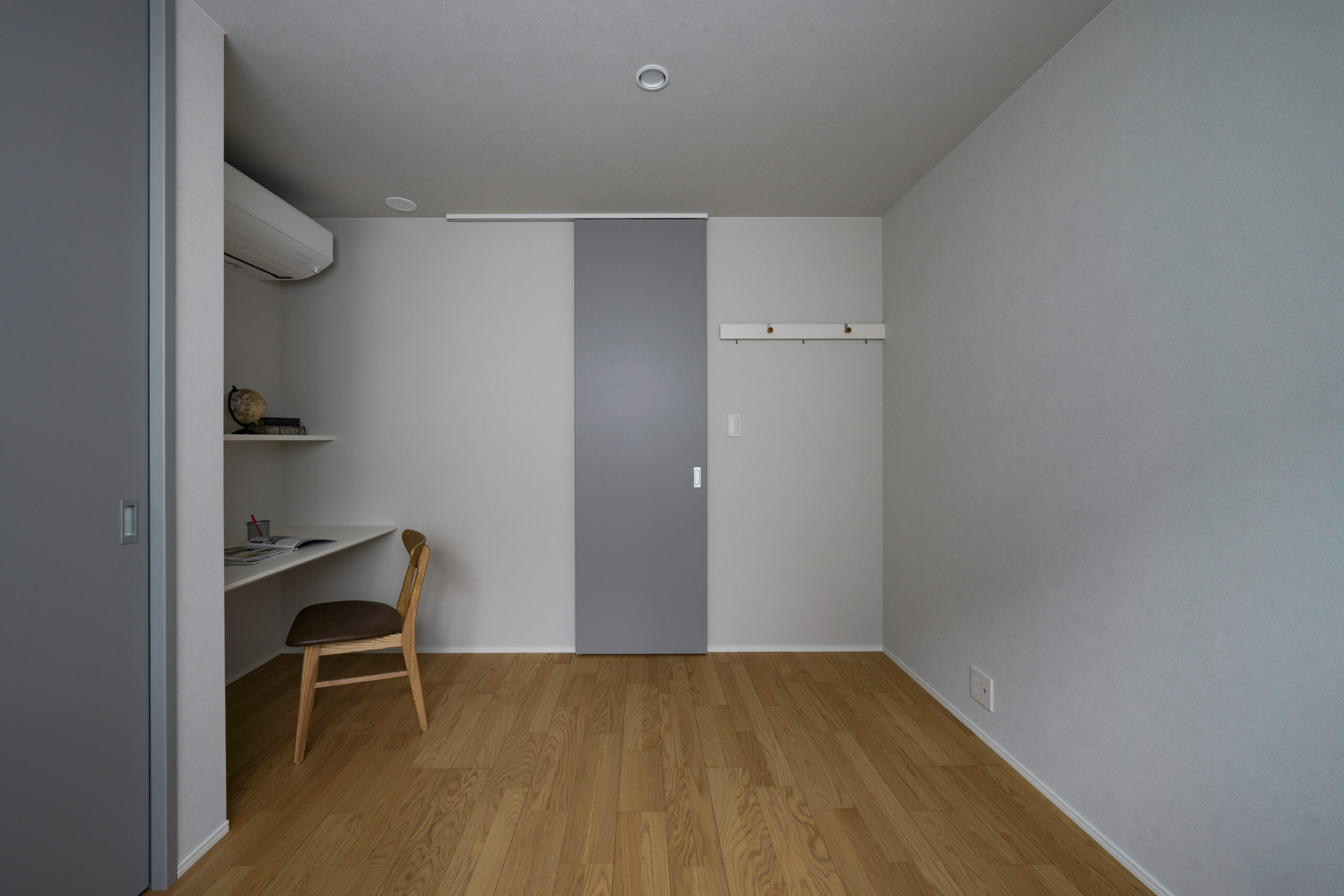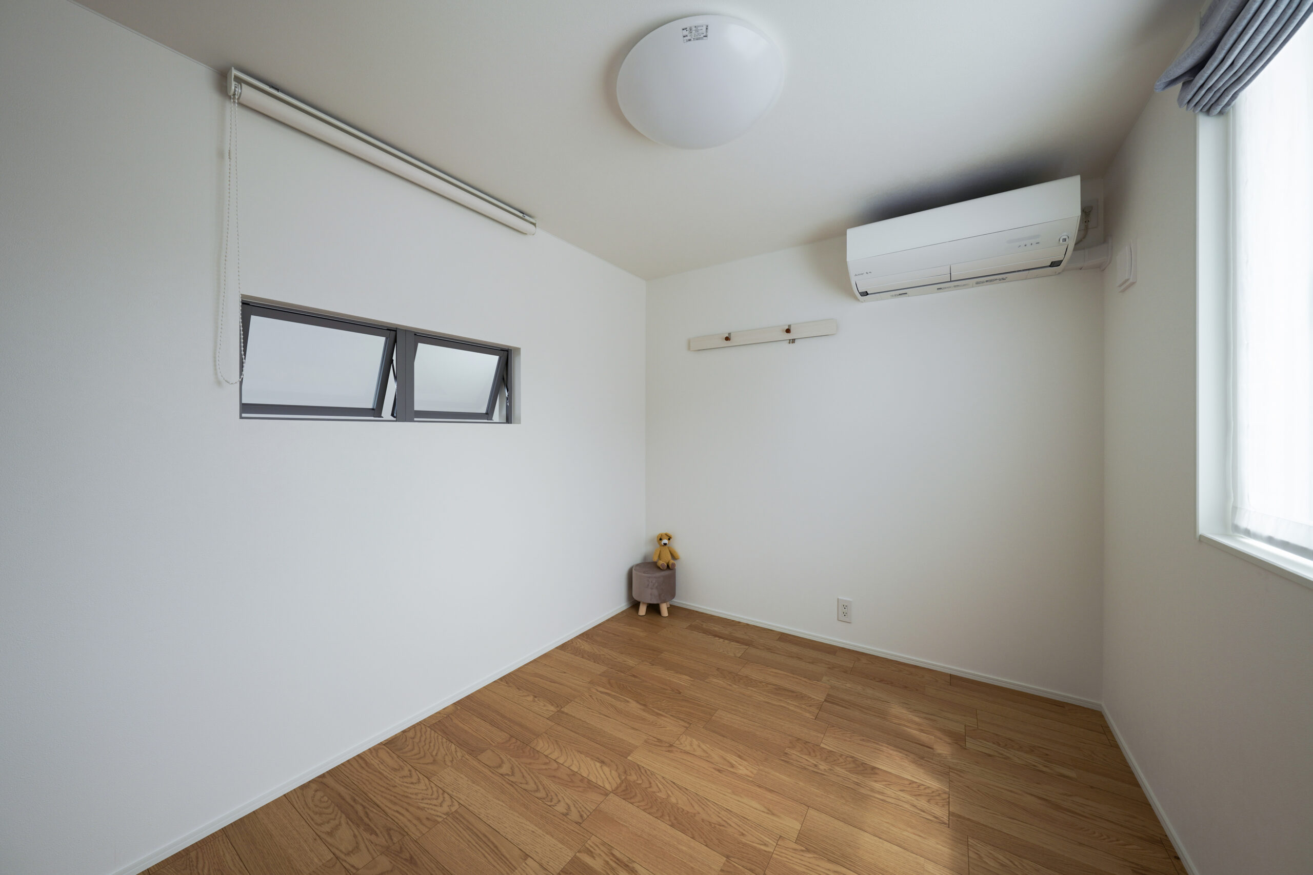 1階に寝室と洋室1部屋を設けた、まさに平屋ライクな暮らしができるお家。洋室は書斎やアトリエ、キッズスペースなど様々な使い道に夢が広がります。ダイニング上には勾配天井の吹き抜けを作りました。明るく開放感があり、毎日の食事も自然と笑顔に。お風呂や洗面はゆったりサイズに仕上げており、バタバタする時間でもストレスフリー。また、2階には子供部屋のみを配置。どの部屋も隣接していないので、家族がそれぞれの時間を大切にできます。