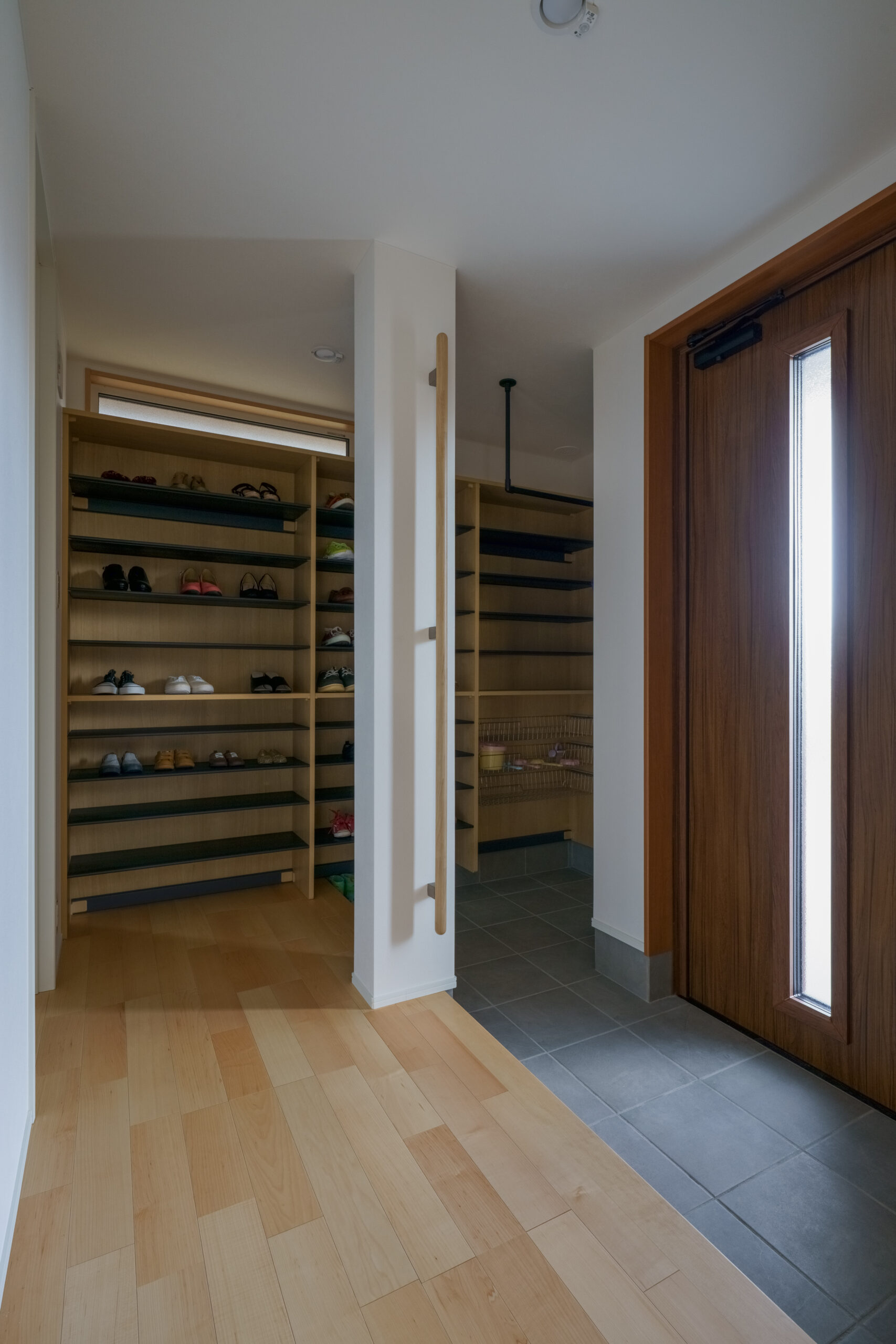 区画内の私道に面する南側に玄関とタイルテラスを設置したため、大通りからの視線を気にすることなく、安心して生活を送ることができます。