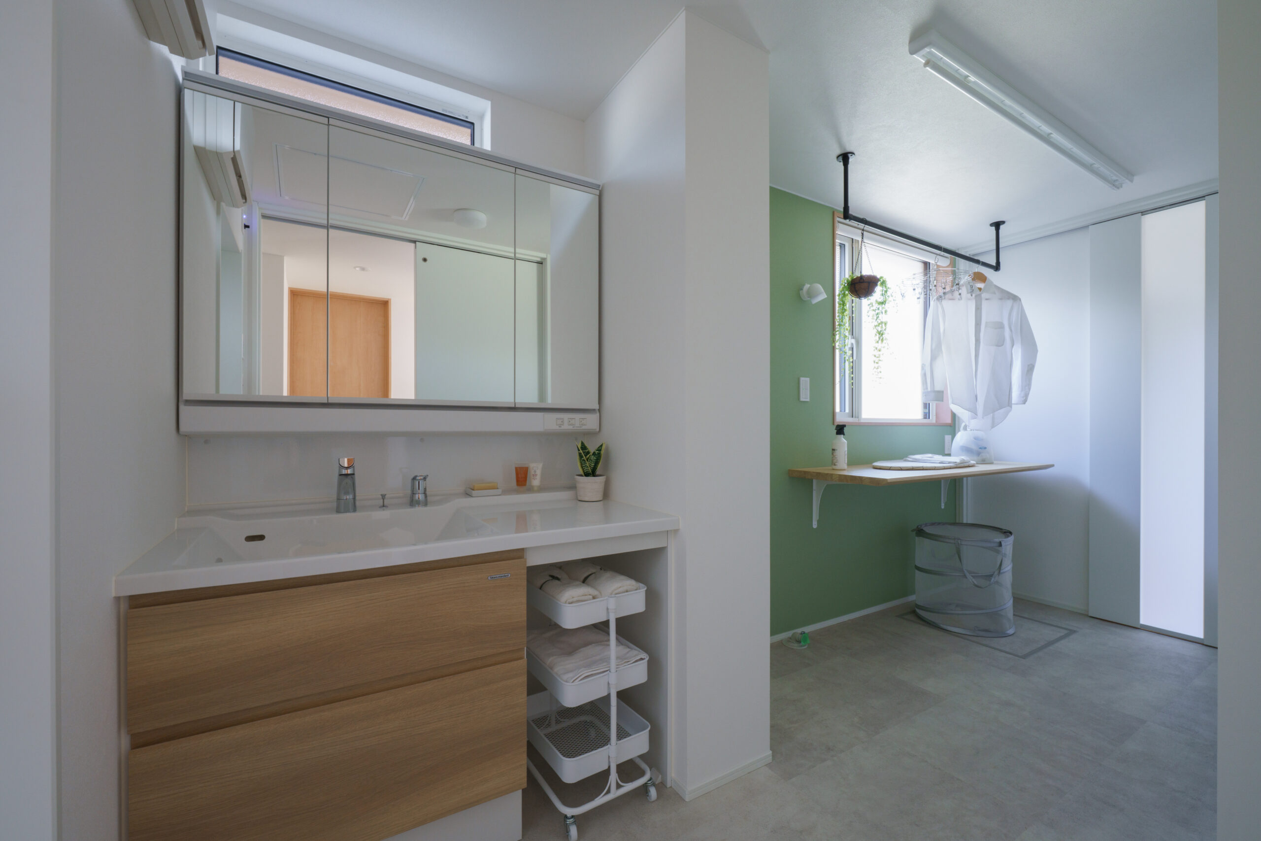 家の中心に配置した階段周辺には家事楽動線を設けており、ストレスを感じることなく家事をすることができます。